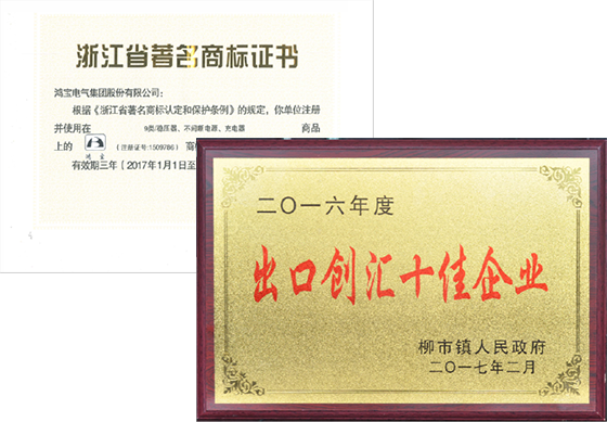 “鸿宝”牌稳压电源被评为“浙江省出口名牌产品"