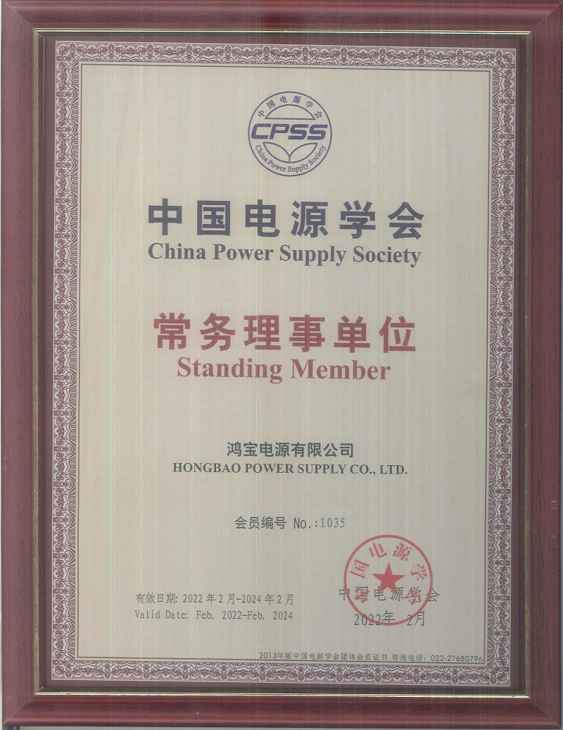 鸿宝公司经中国电源学会审核批准为中国电源学会常务理事单位