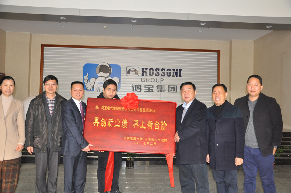 一份特殊的新春贺礼,2017年2月3日上午九点,春节后上班第一天,乐清市副市长吴呈钱带领经信局一行,来到鸿宝集团总部,专程为乐清市销售首超5亿元的企业送来牌匾,激励企业再接再厉、再创辉煌,为乐清经济发展作出新的更大贡献。