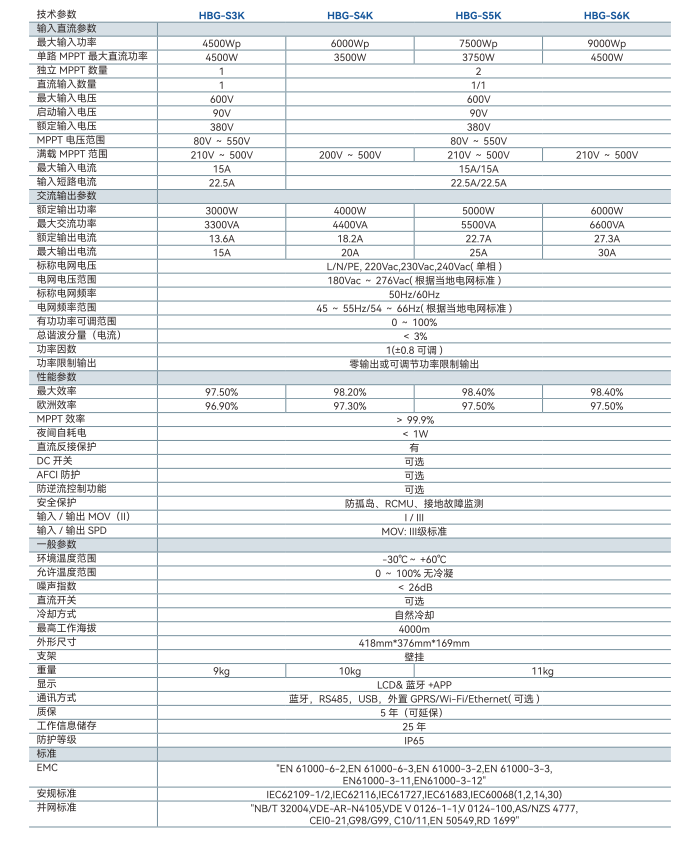 单相光伏并网逆变器(HBG-S3K~S6K)