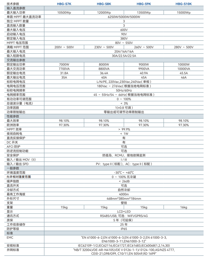 单相光伏逆变器 (HBG-S7~10K)单相光伏逆变器 (HBG-S7~10K)