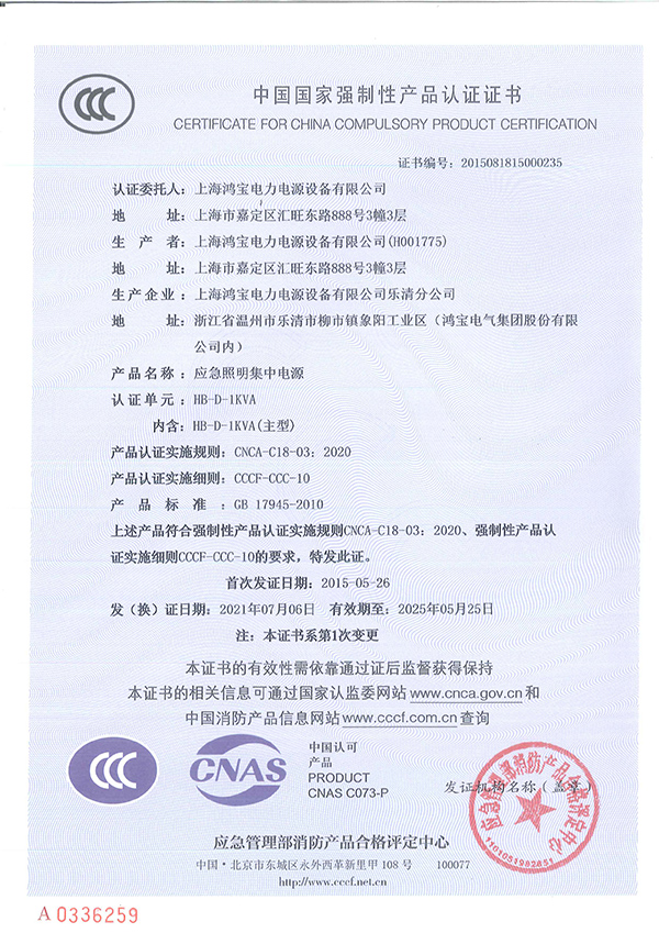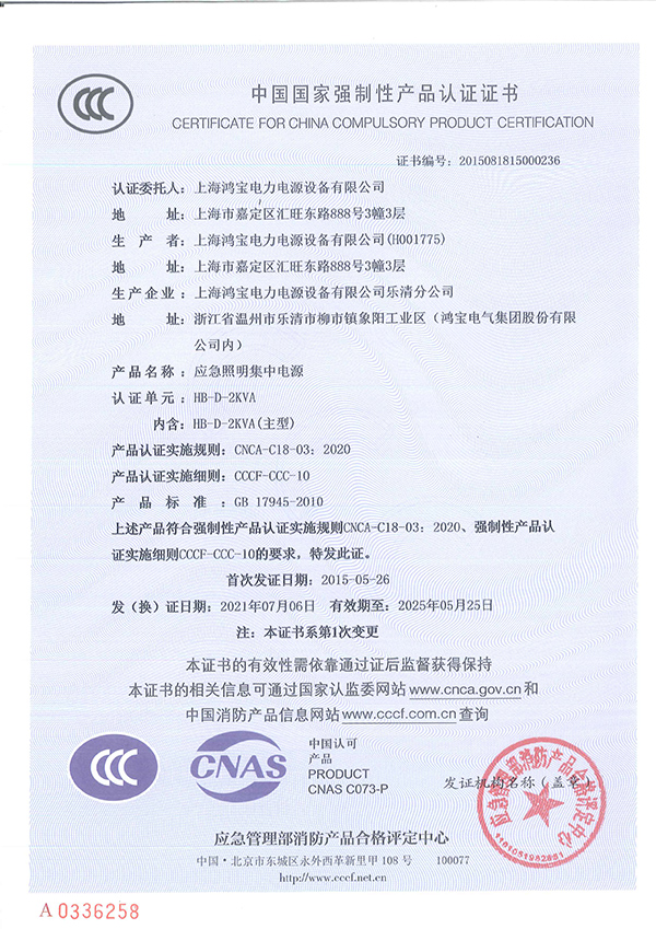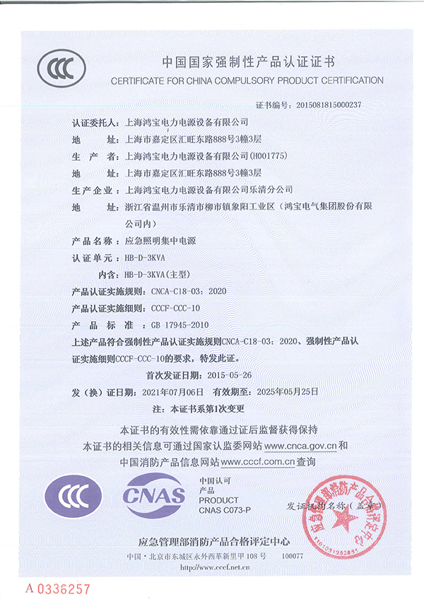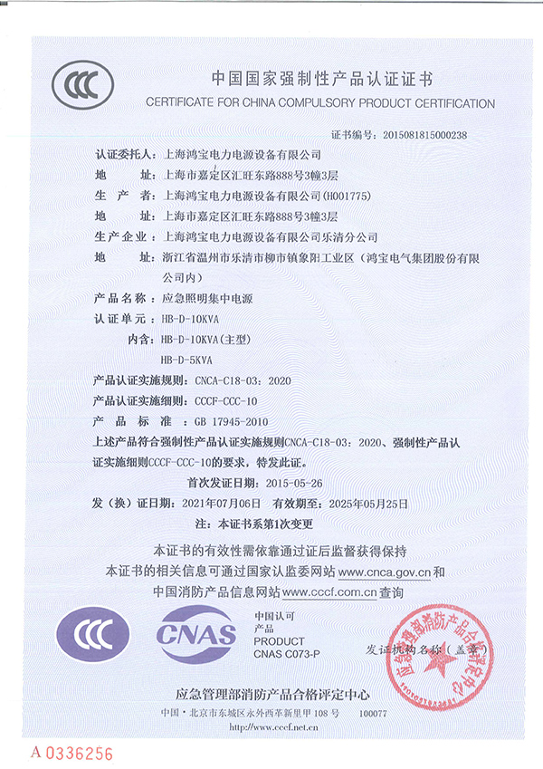 注:最新国家标准GB 17945-2010《消防应急灯具专用应急电源》标准规定为备用时间90分钟。且符合强制性产品认证实施规则CNCA-C18-01:2014、强制性产品认证实施细则CCCF-HBJ-02要求。