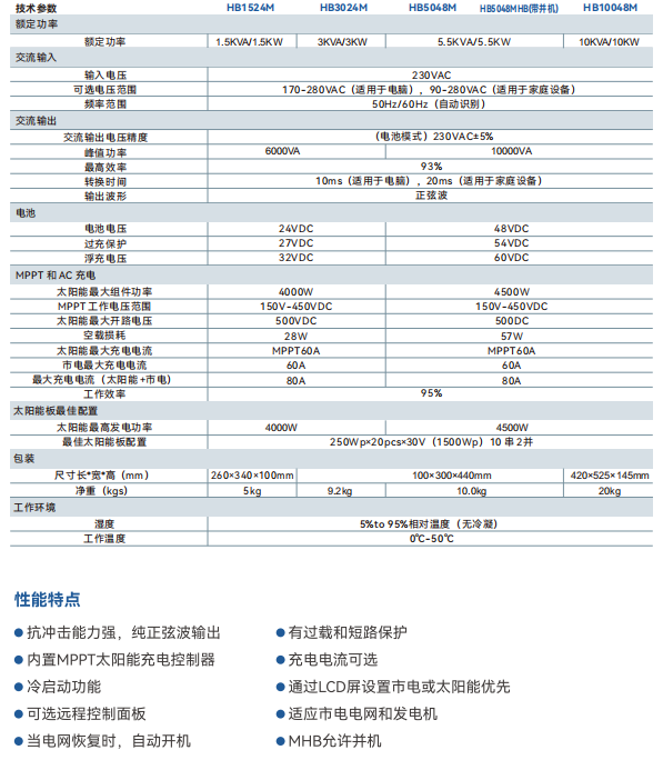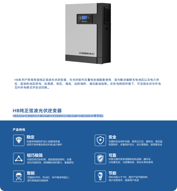 HB纯正弦波光伏逆变器HB3024M(3000W)/(5500W)/(5500W带手机)